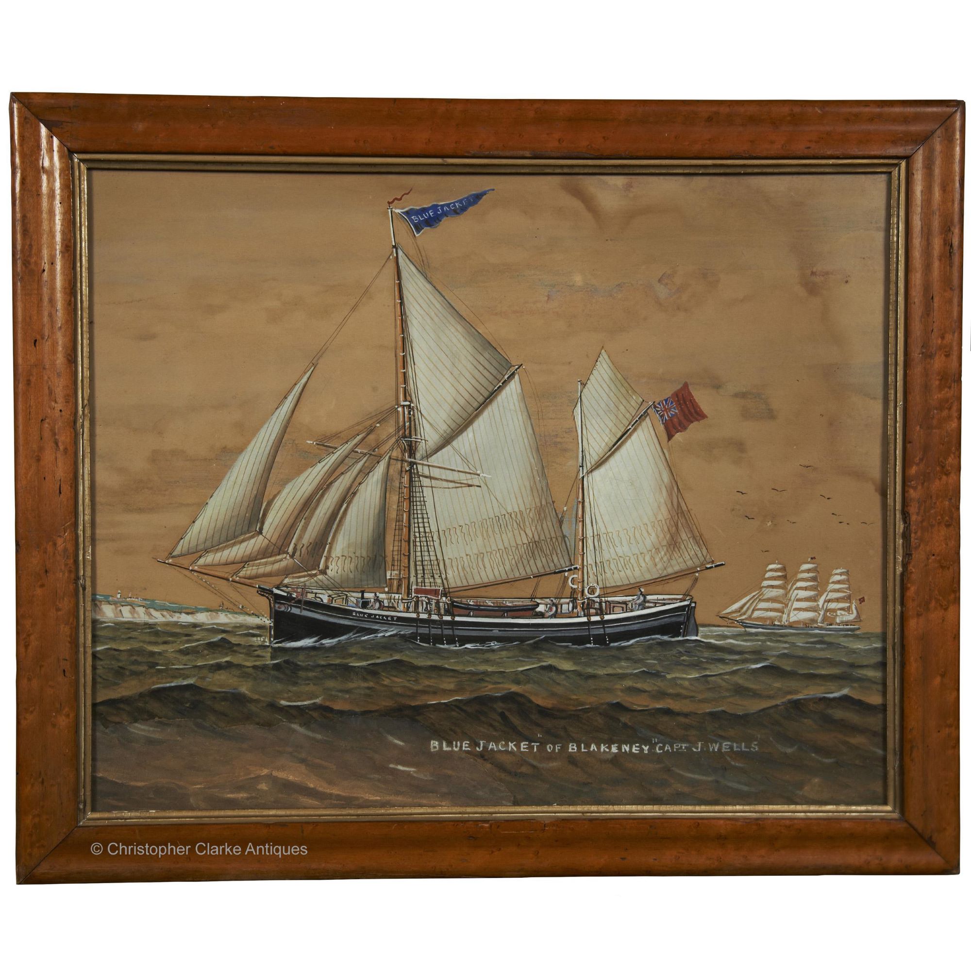 If this painting is not that owned by Anne Massingham, it may well have been done for another unknown crew member of the Blue Jacket. It is not signed or dated but the artist was competent in their work and it would have been a valued keepsake for the original owner. Circa 1900.