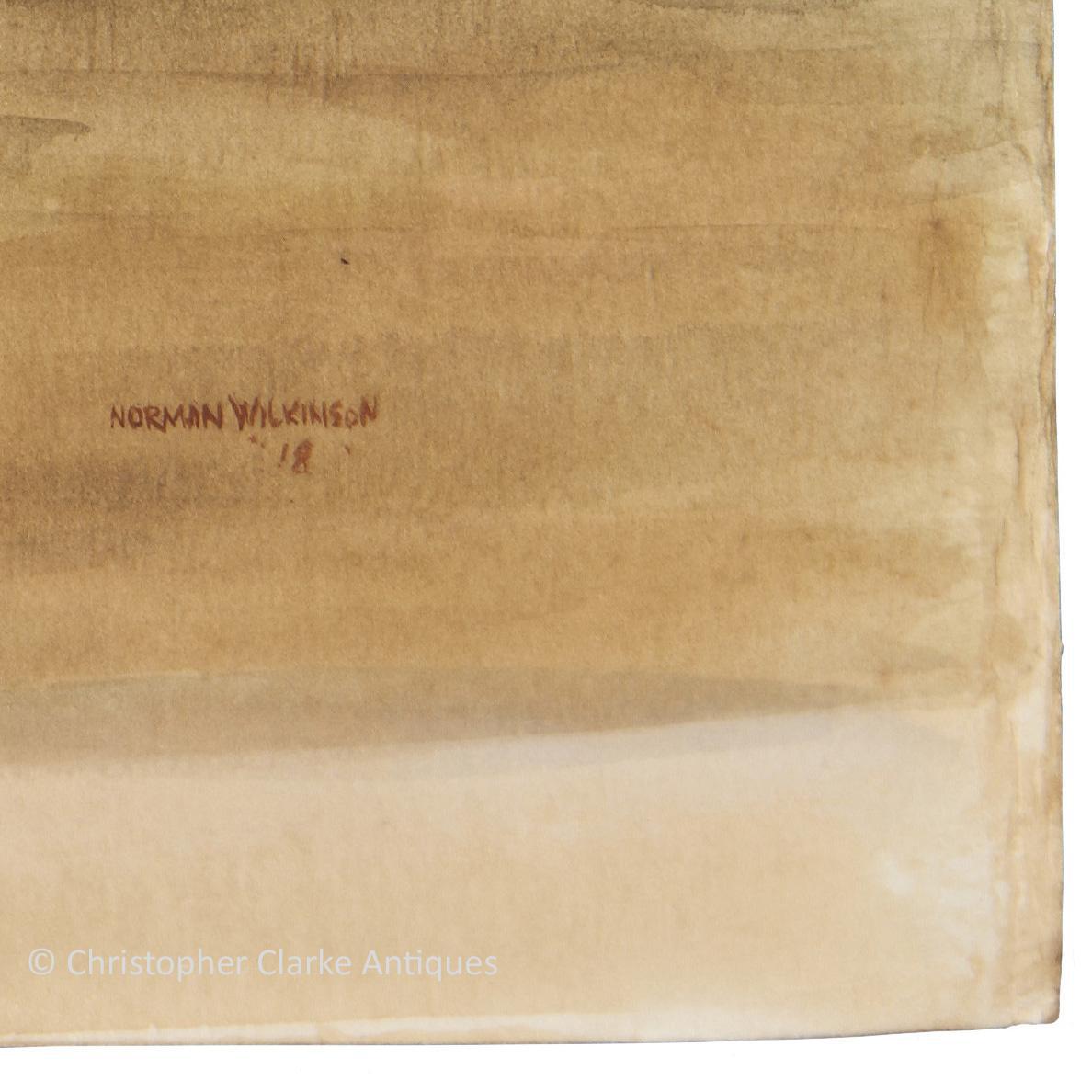 The intended purpose of this illustration, if it was used at all, is not known. The picture is well painted, as you would expect of Wilkinson, with detail to the subject whilst the background is far looser. Dated 1918.