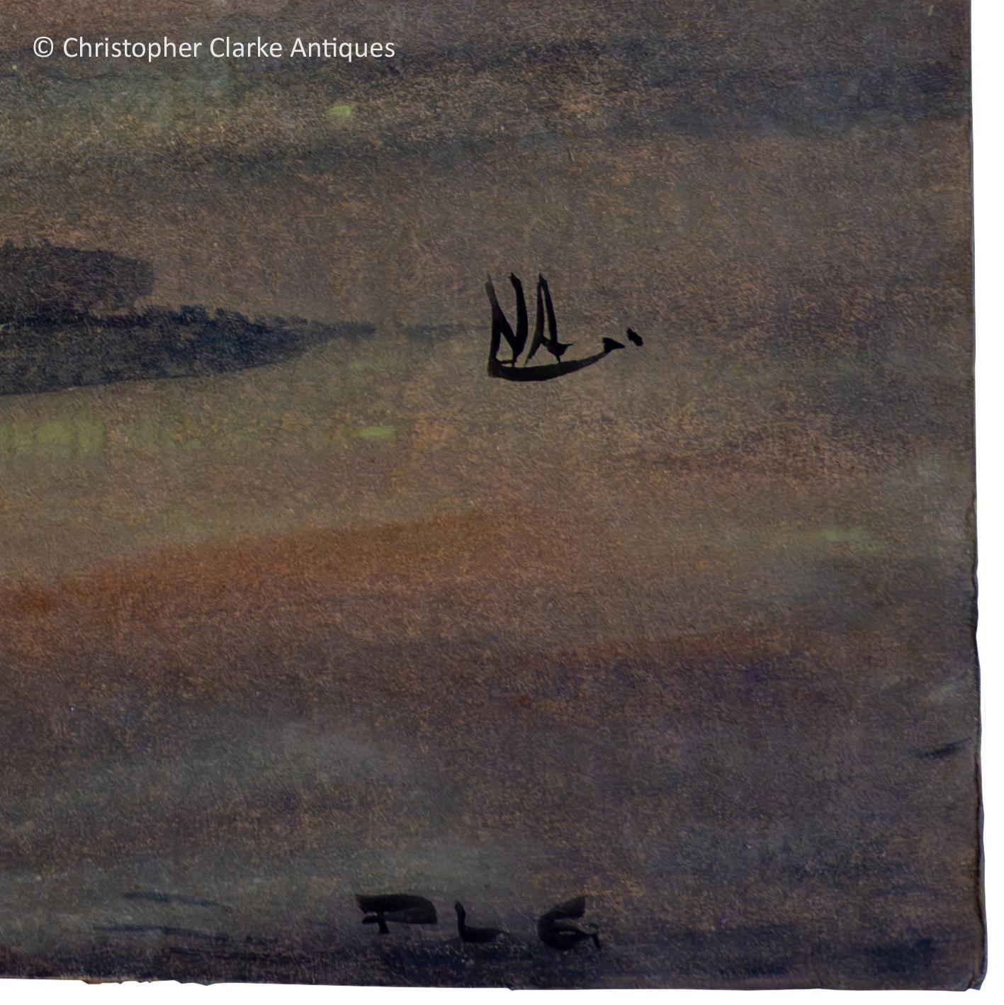 The painting is initialled 'NA.' to front towards the bottom right where 'PL6' is noted. The bottom left corner is inscribed 'III'. The amount of information to the back of this picture is fascinating. Although it is seen now as a well painted illustration of an airship, it reminds us that the picture was first made for very practical purposes. Circa 1918.