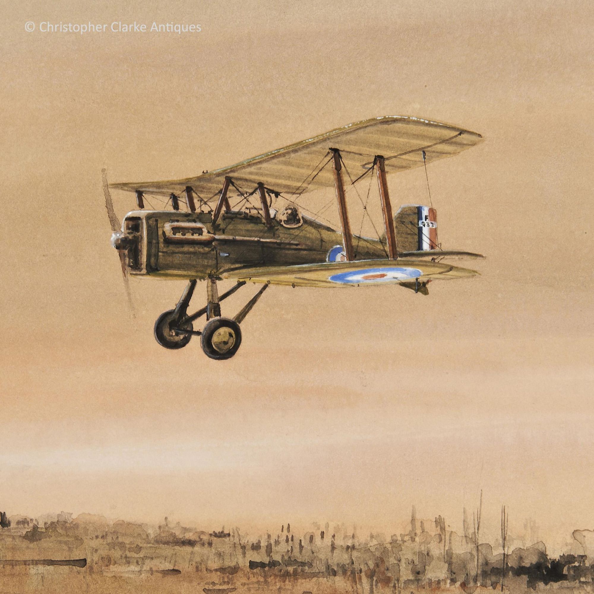 A watercolour and gouache on board illustration of a Wolseley S.E.5a Biplane.