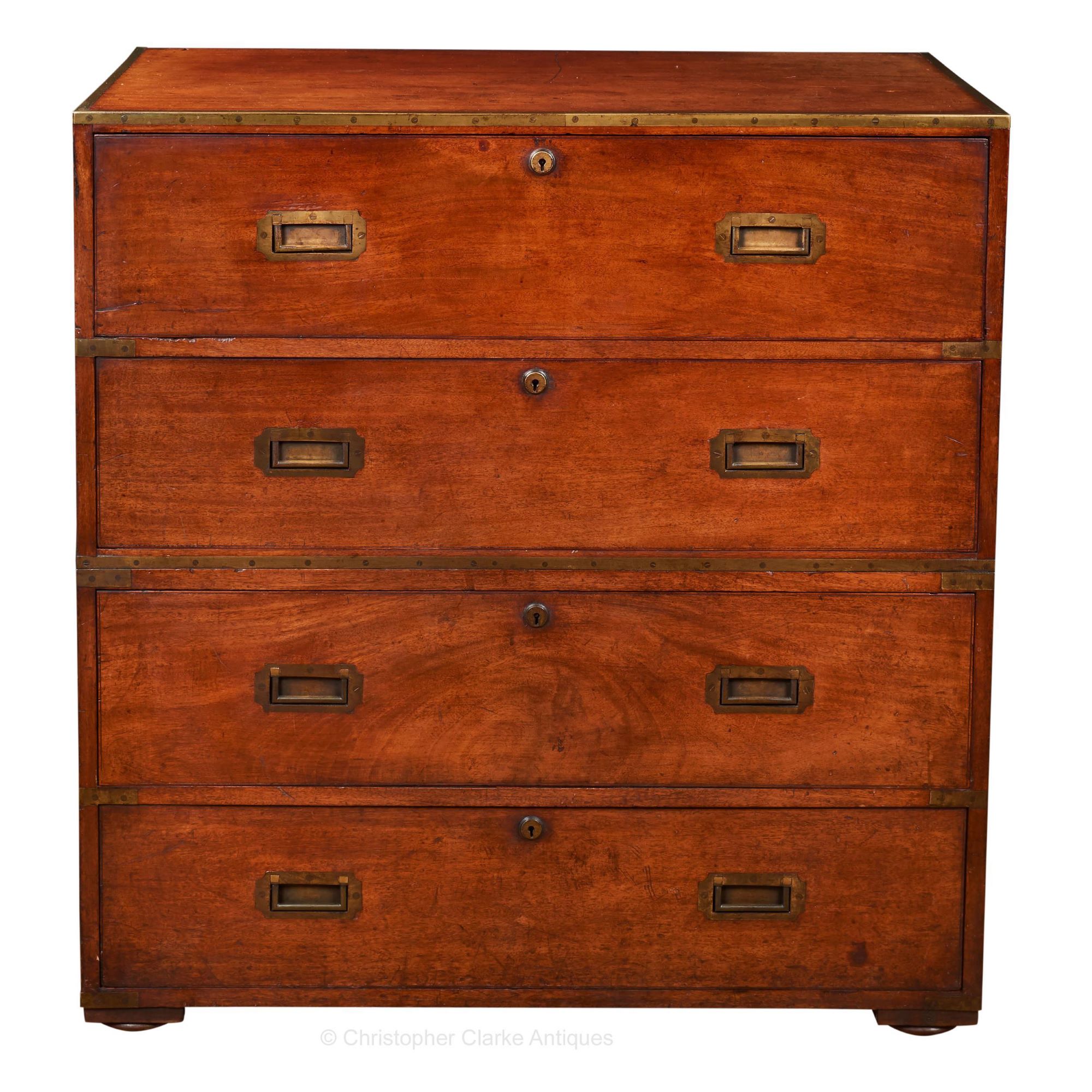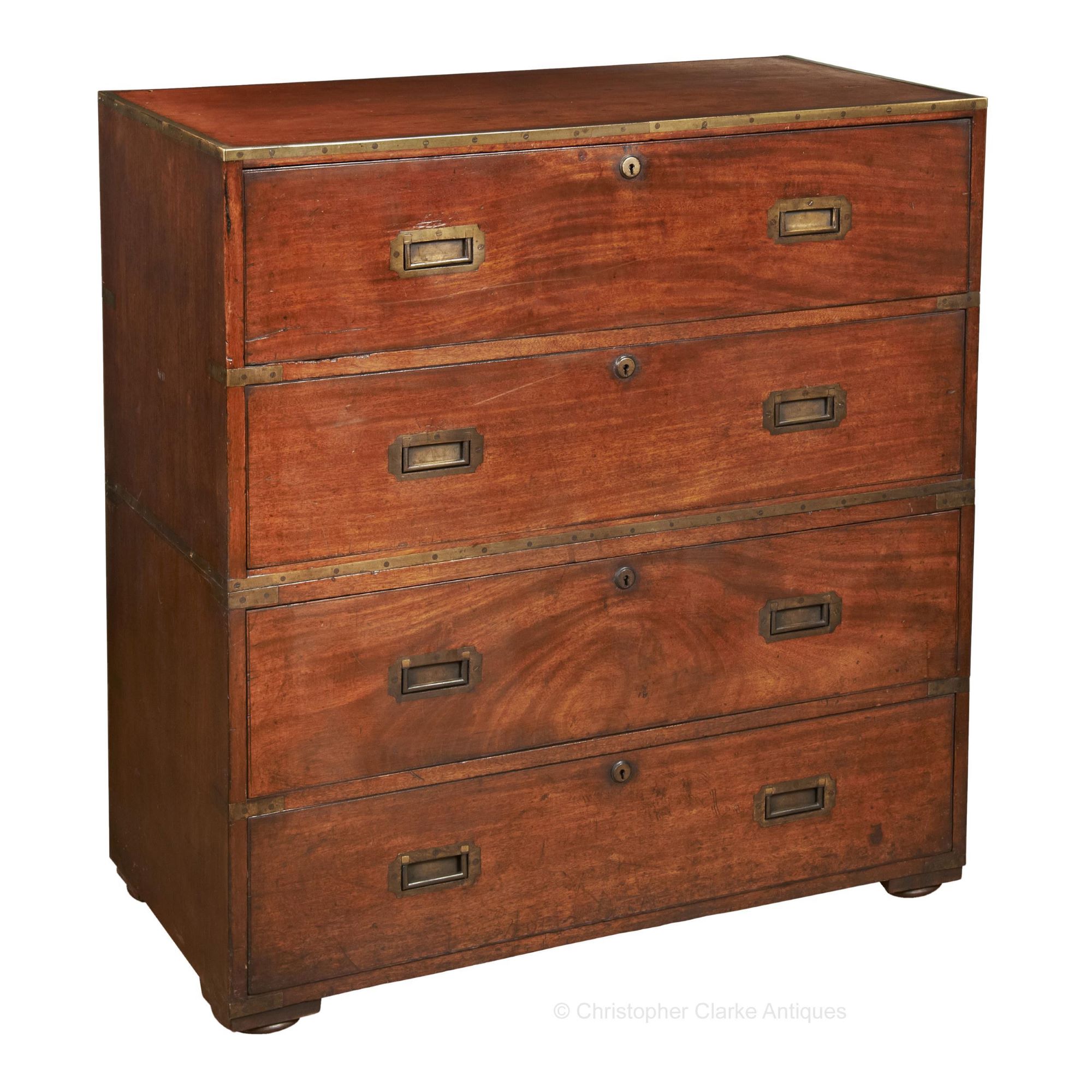 The chest has four long drawers, as opposed to the standard two short over three long. They are lined in mahogany and have quadrant mouldings to the interior to strengthen them. The top drawer has beech linings and a fixed divider set to the left side.