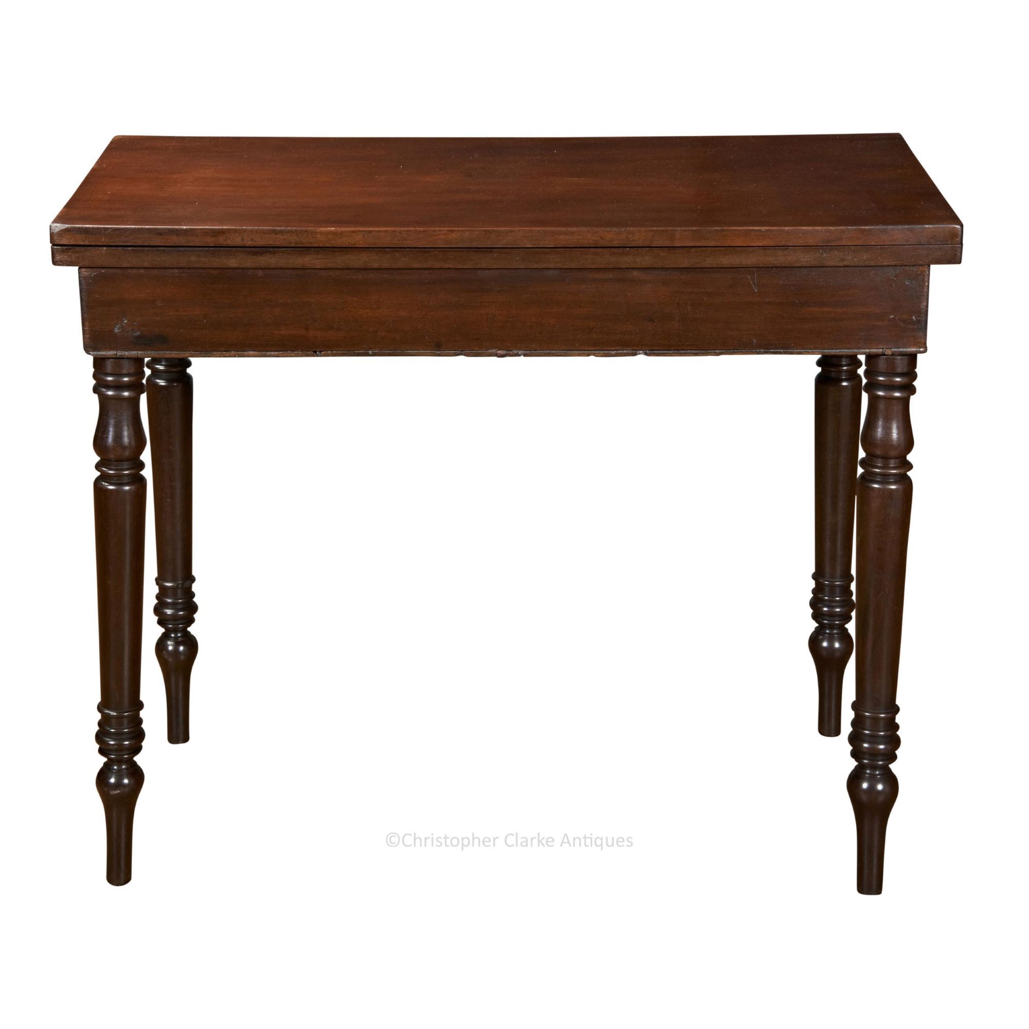 A Georgian, mahogany Tea Table with removable legs for travel.