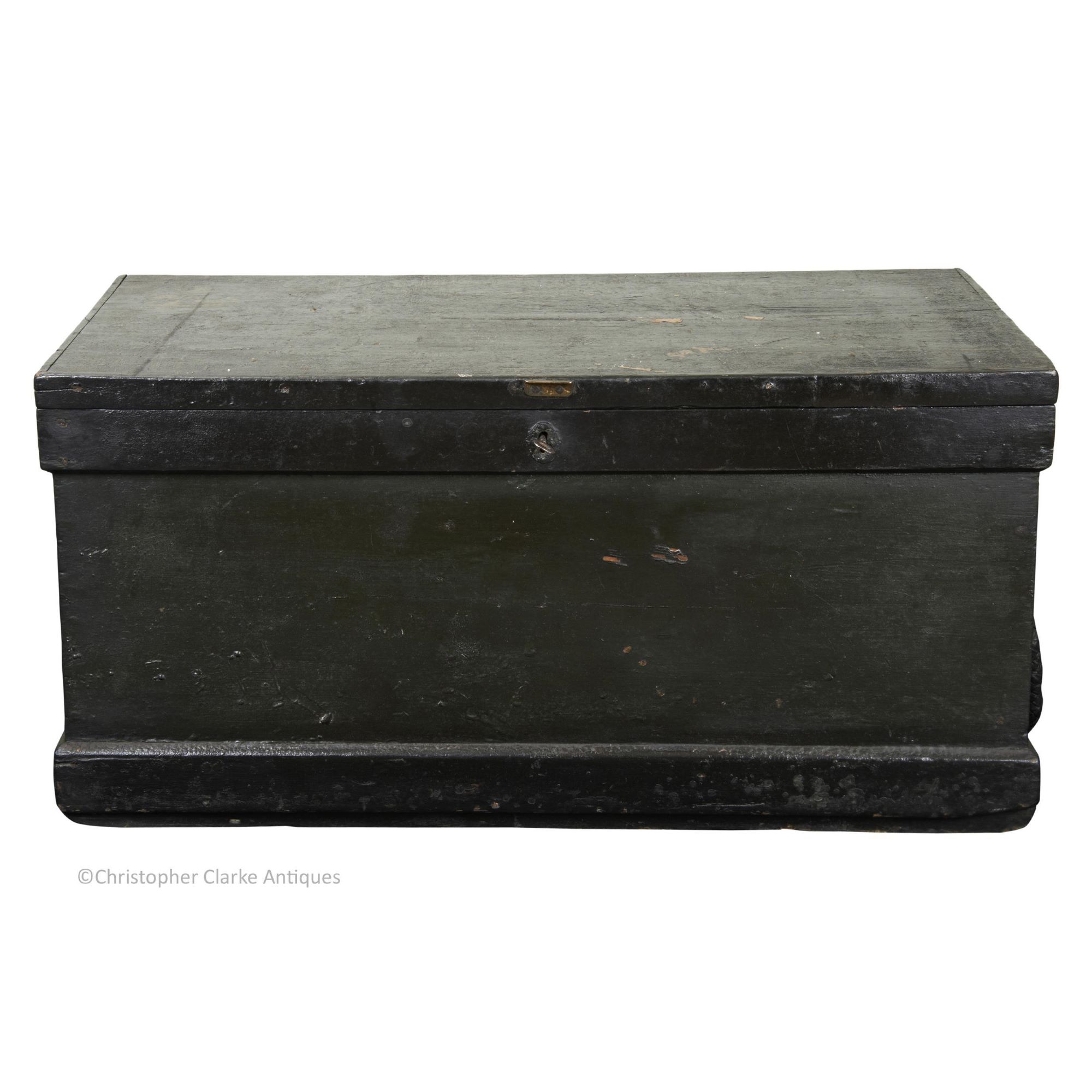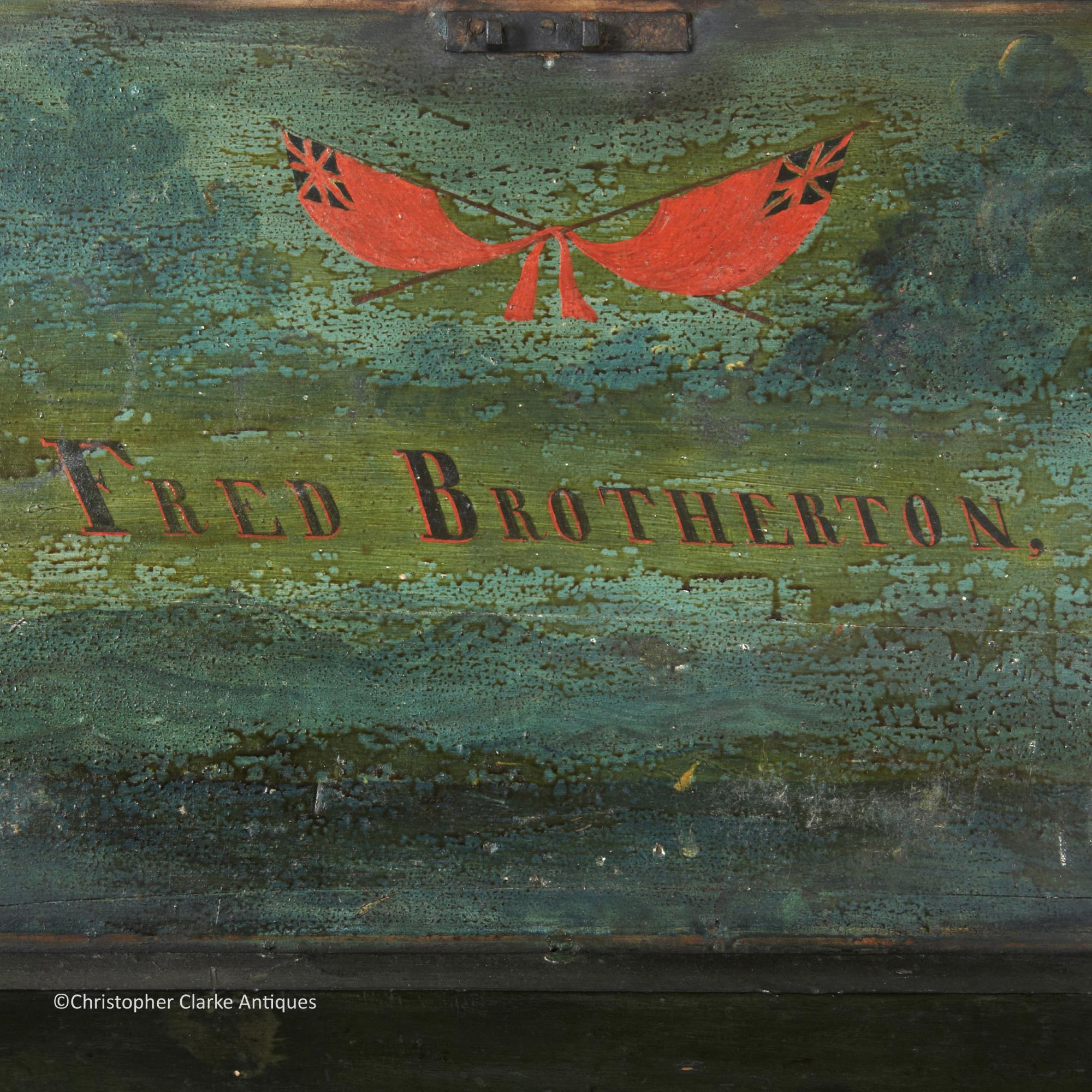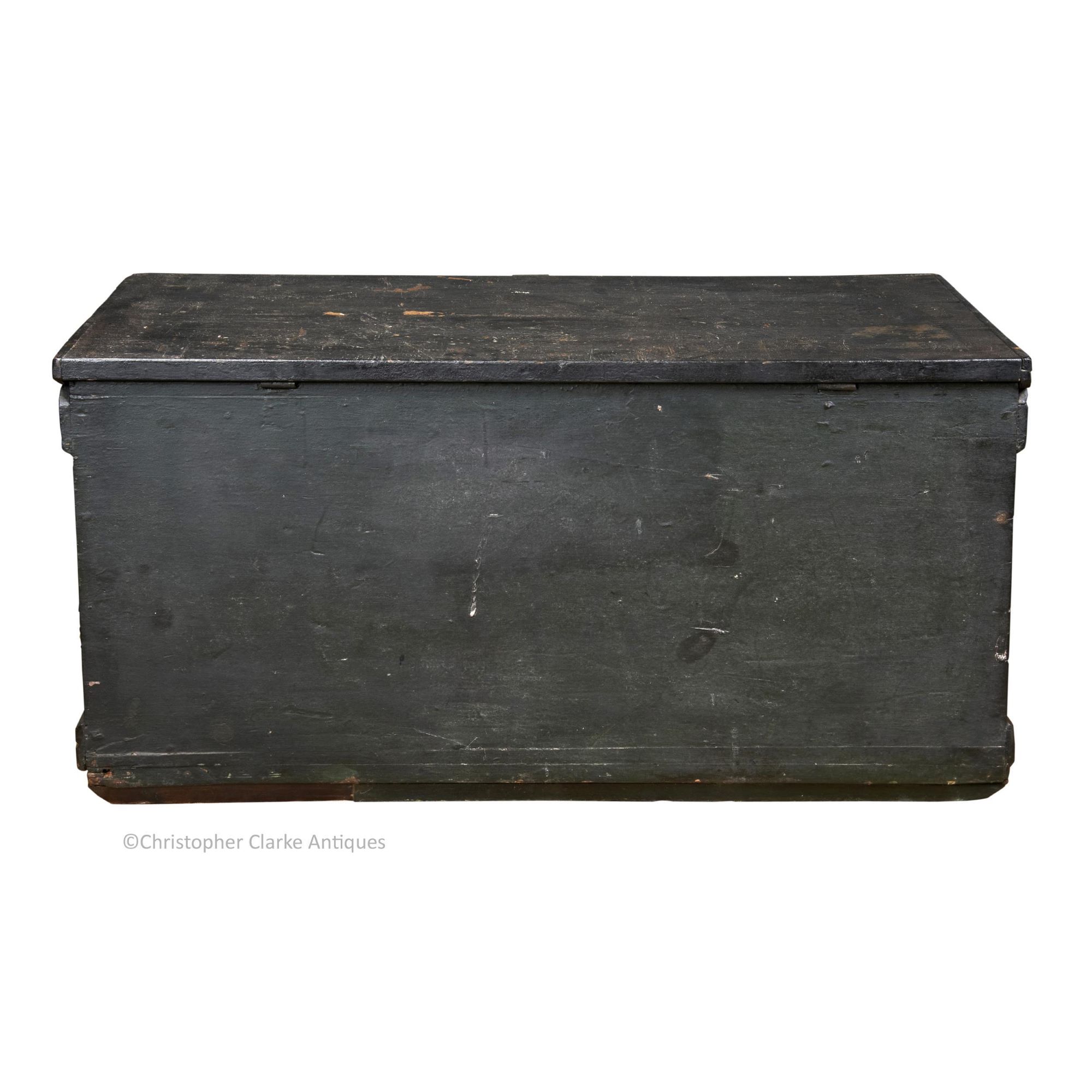 A green and black painted pine Sailor's Trunk that belonged to Frederick Brotherton.