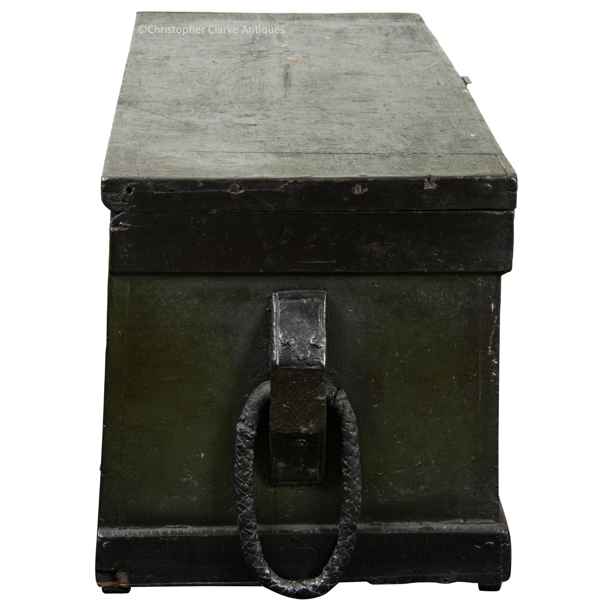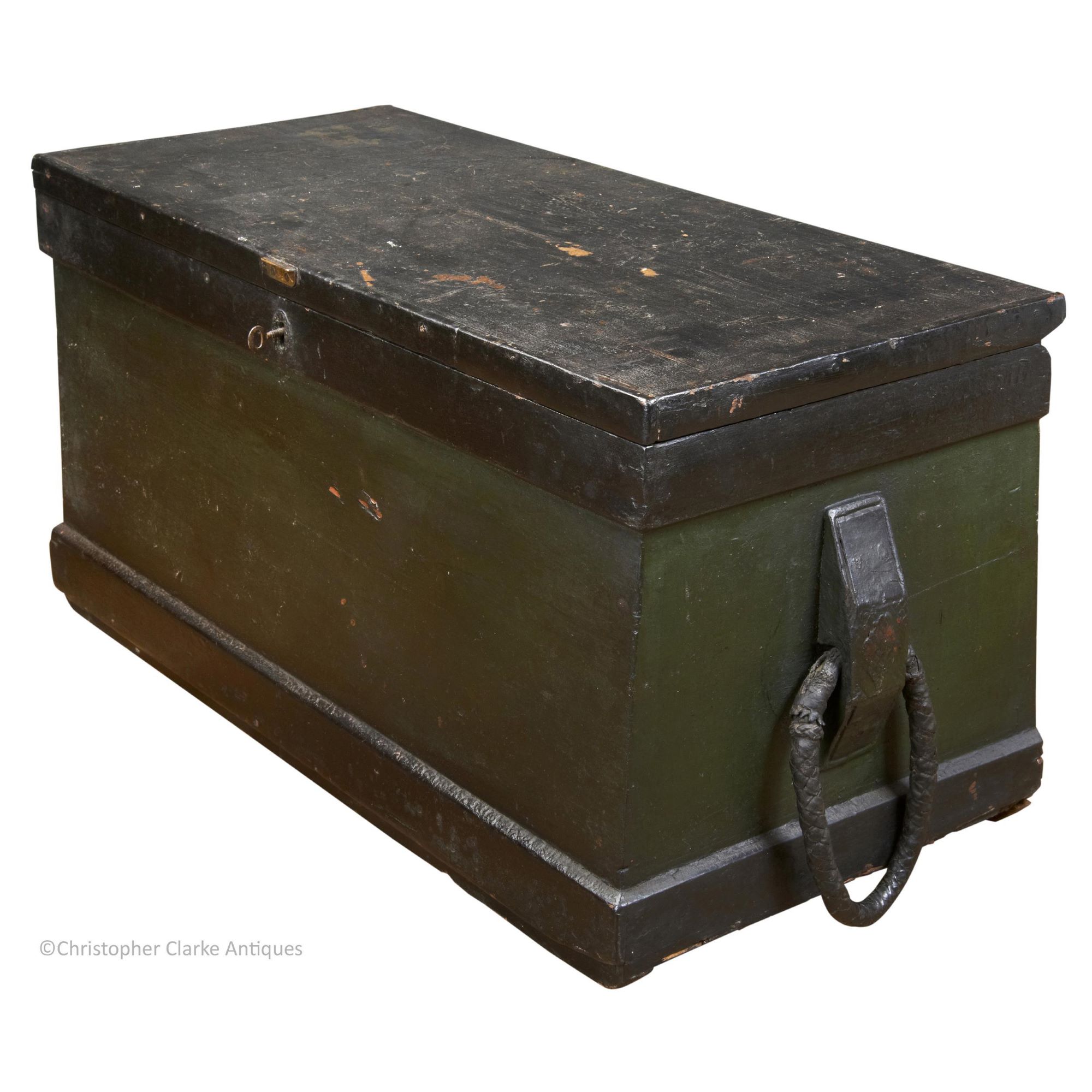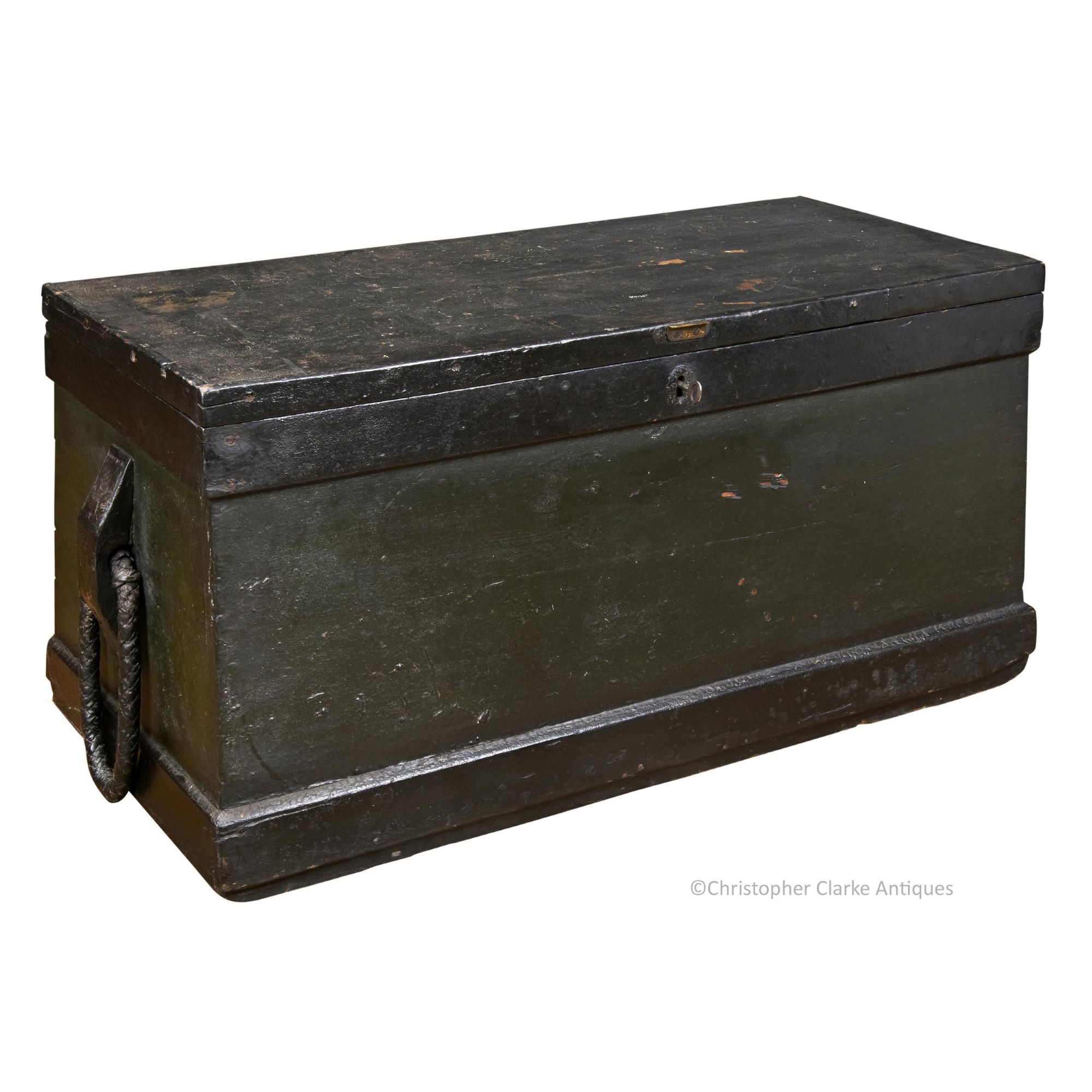 A green and black painted pine Sailor's Trunk that belonged to Frederick Brotherton.