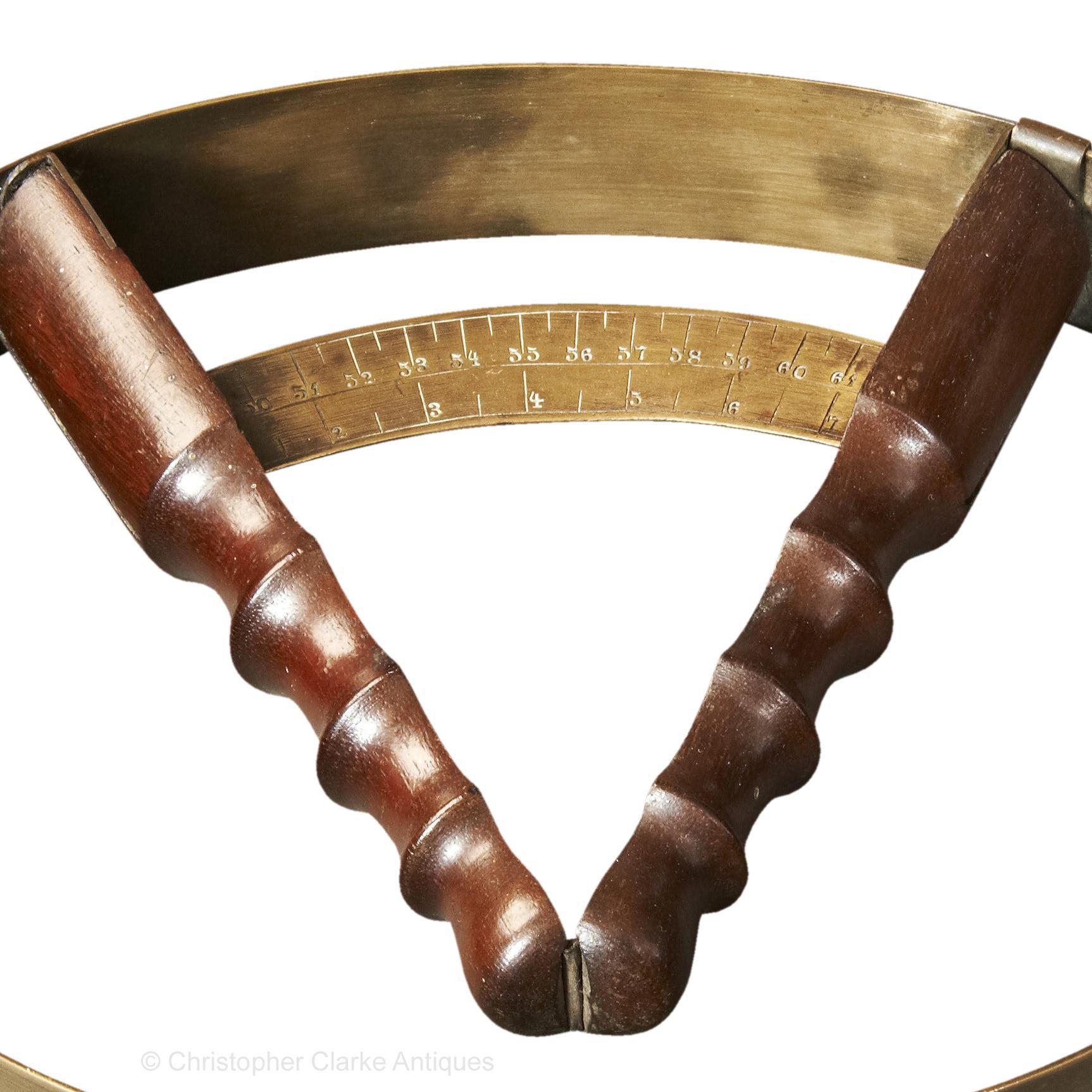 A brass and mahogany Hat Measure.