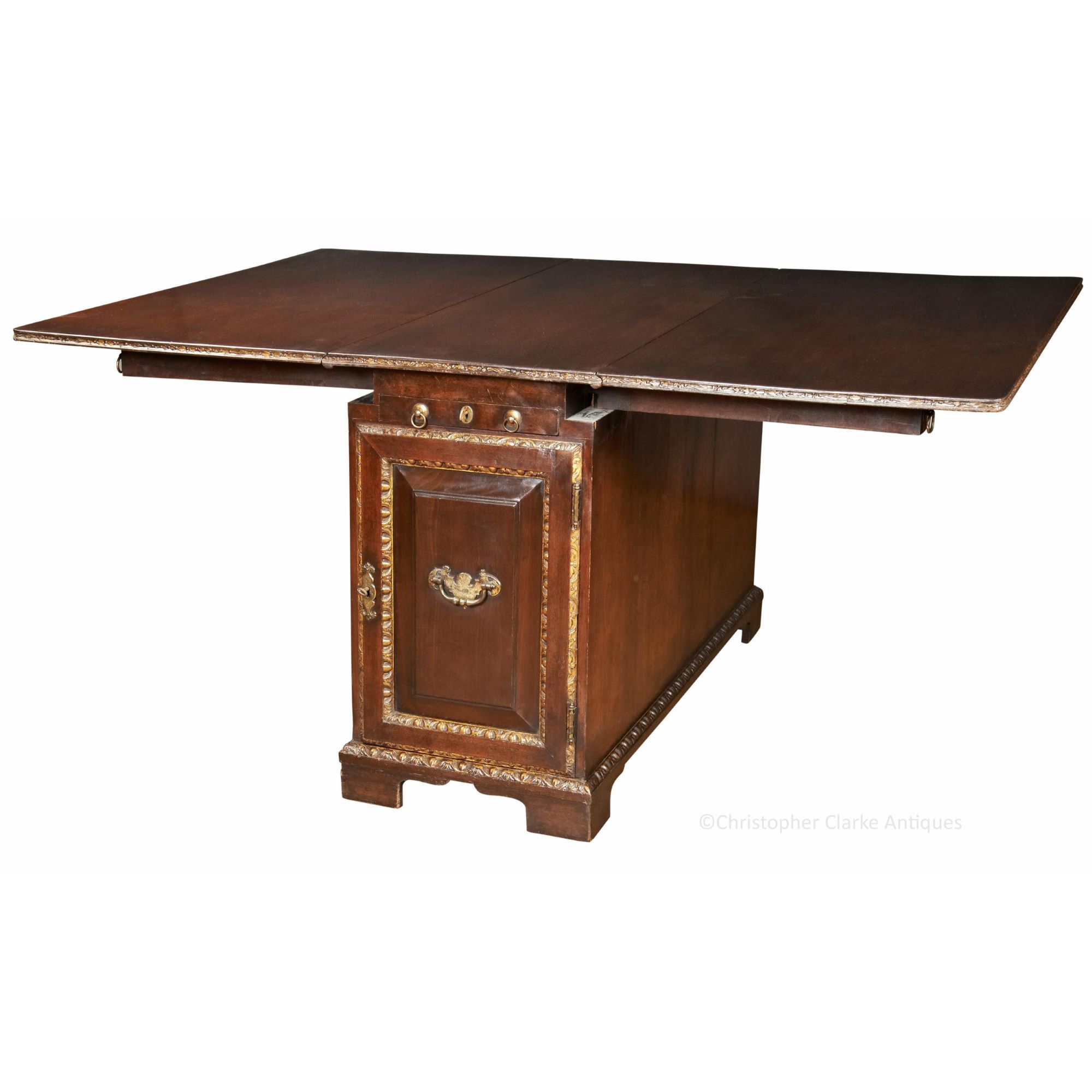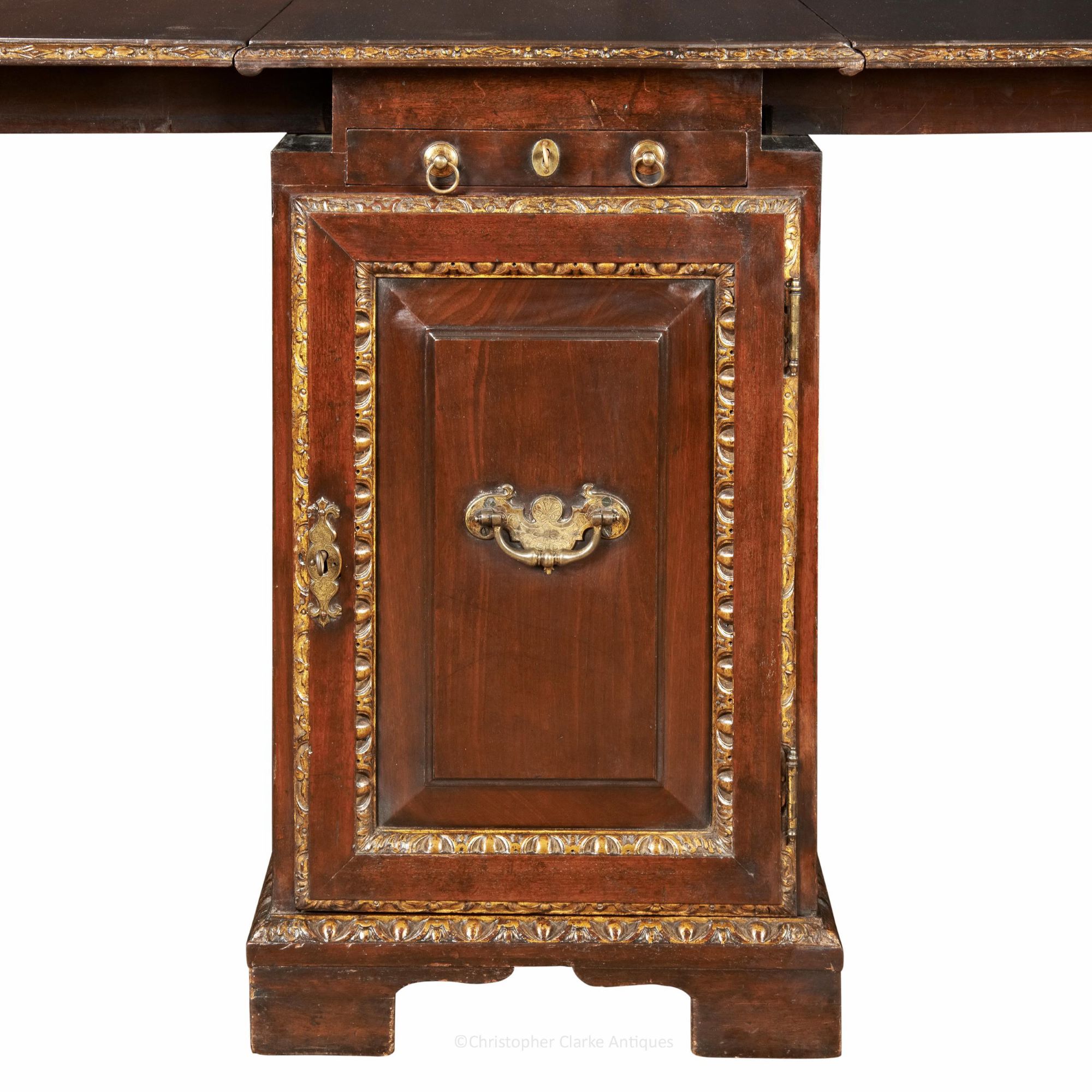 An unusual, Georgian Cuban mahogany table with desk and cupboards to the central pedestal.