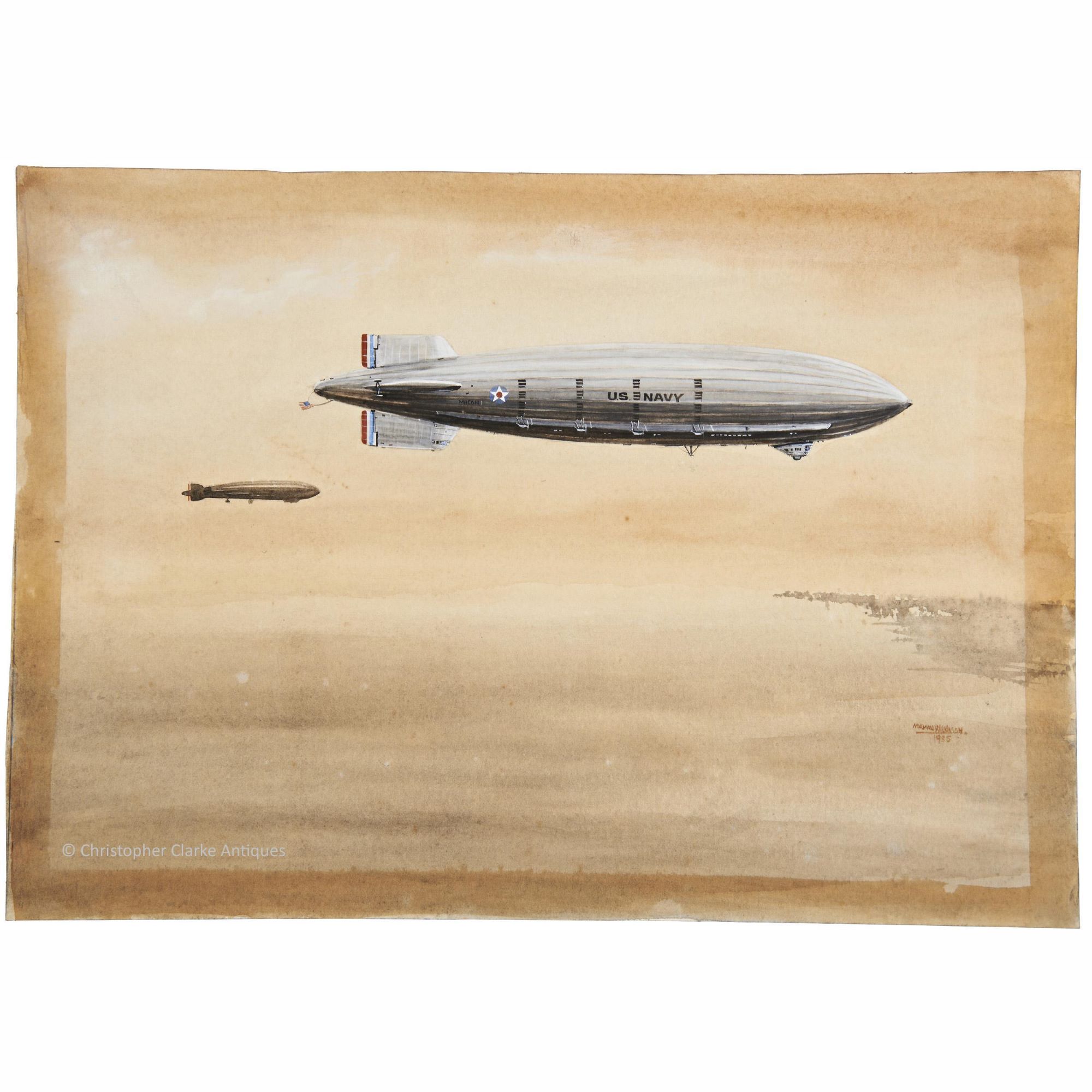 A watercolour and gouache on board of the world's largest airship, the USS Macon ZRS-5 by Norman Wilkinson.
