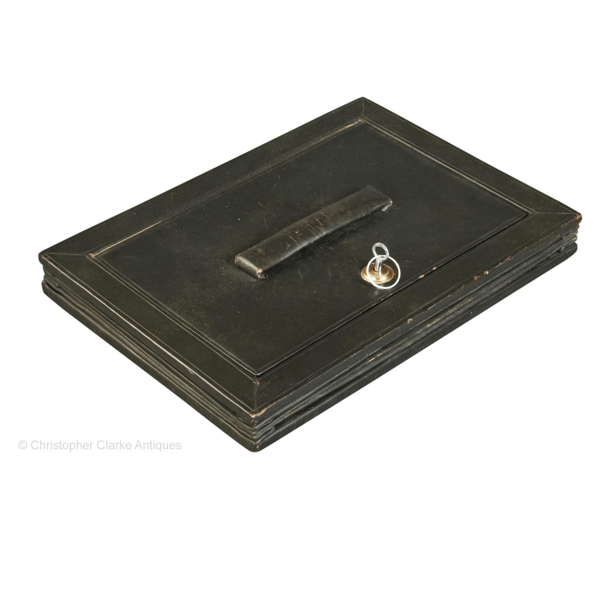The case is well made and good quality even down to the interior base of the case being decorated with blind tooling. The key is replaced making this a fully functional Despatch Case. Circa 1901.
