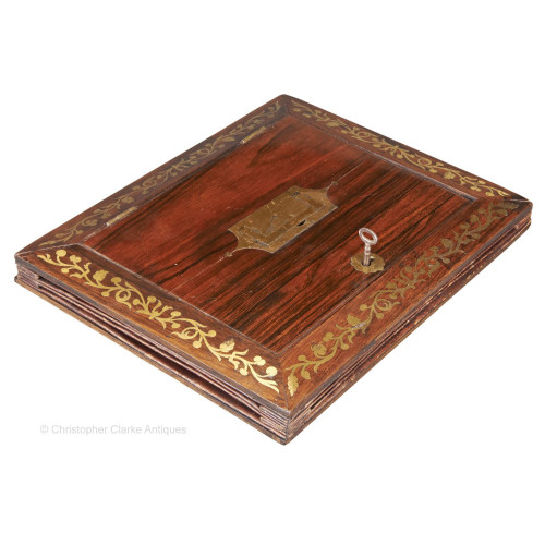 The Safe is painted to resemble rosewood with box lines to each side to suggest panels. The top has further thin gilt lines with one thicker half inch border. The interior of the Safe is painted red and retains its tray. Its common for the tray to such Safes to be missing.