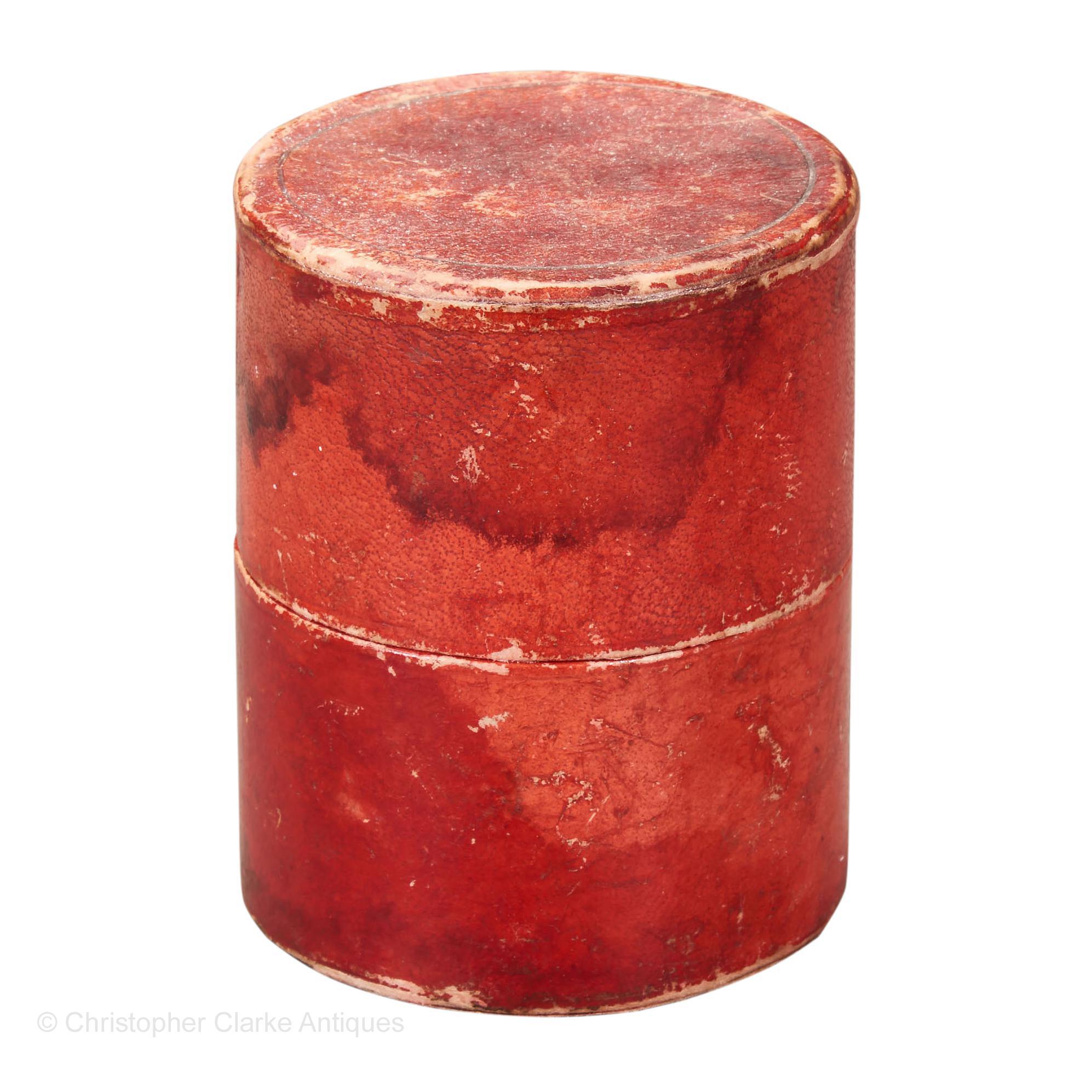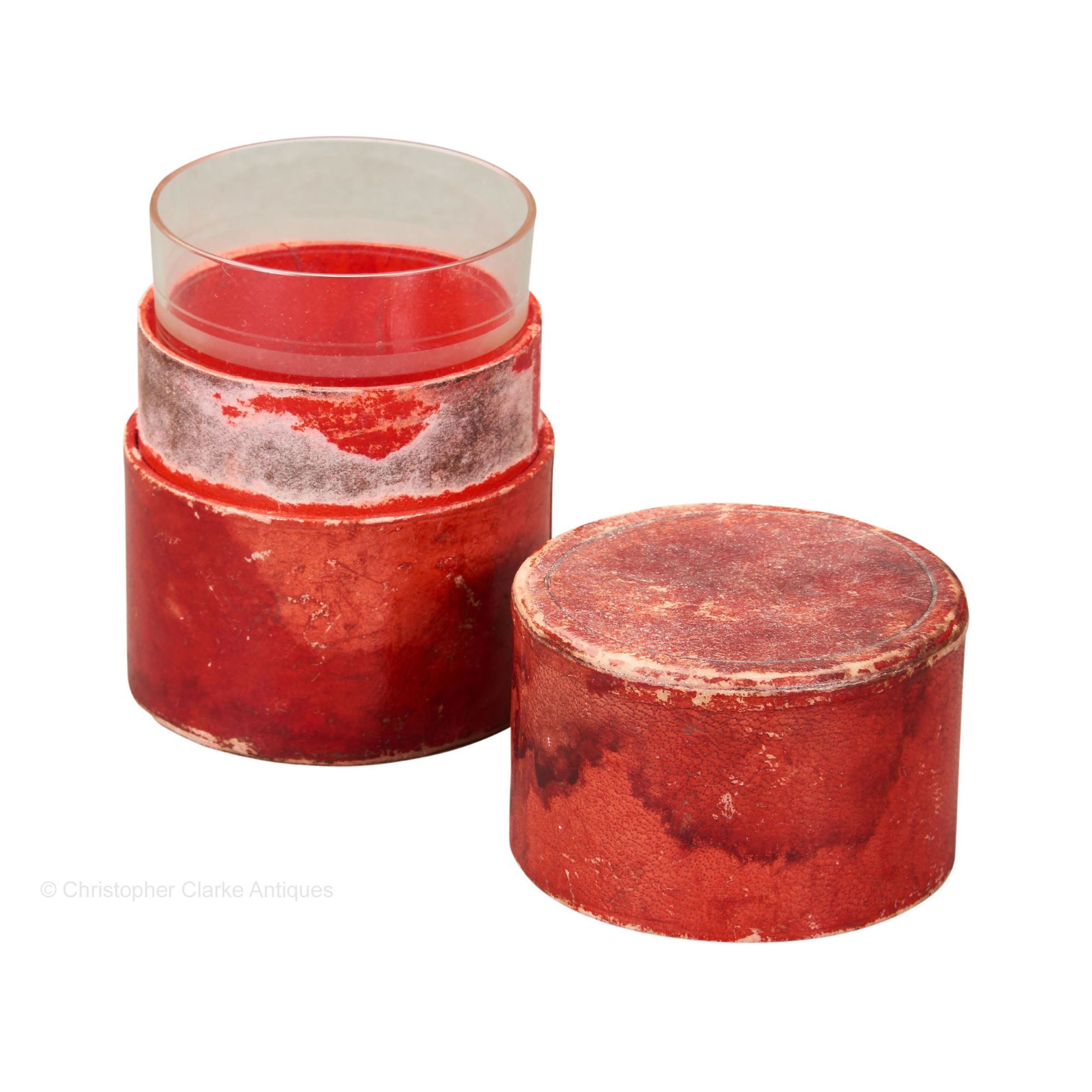The glass has a red card case to protect it when not in use. The case has several scuffs and wear from use but is still sound. Early 20th Century.