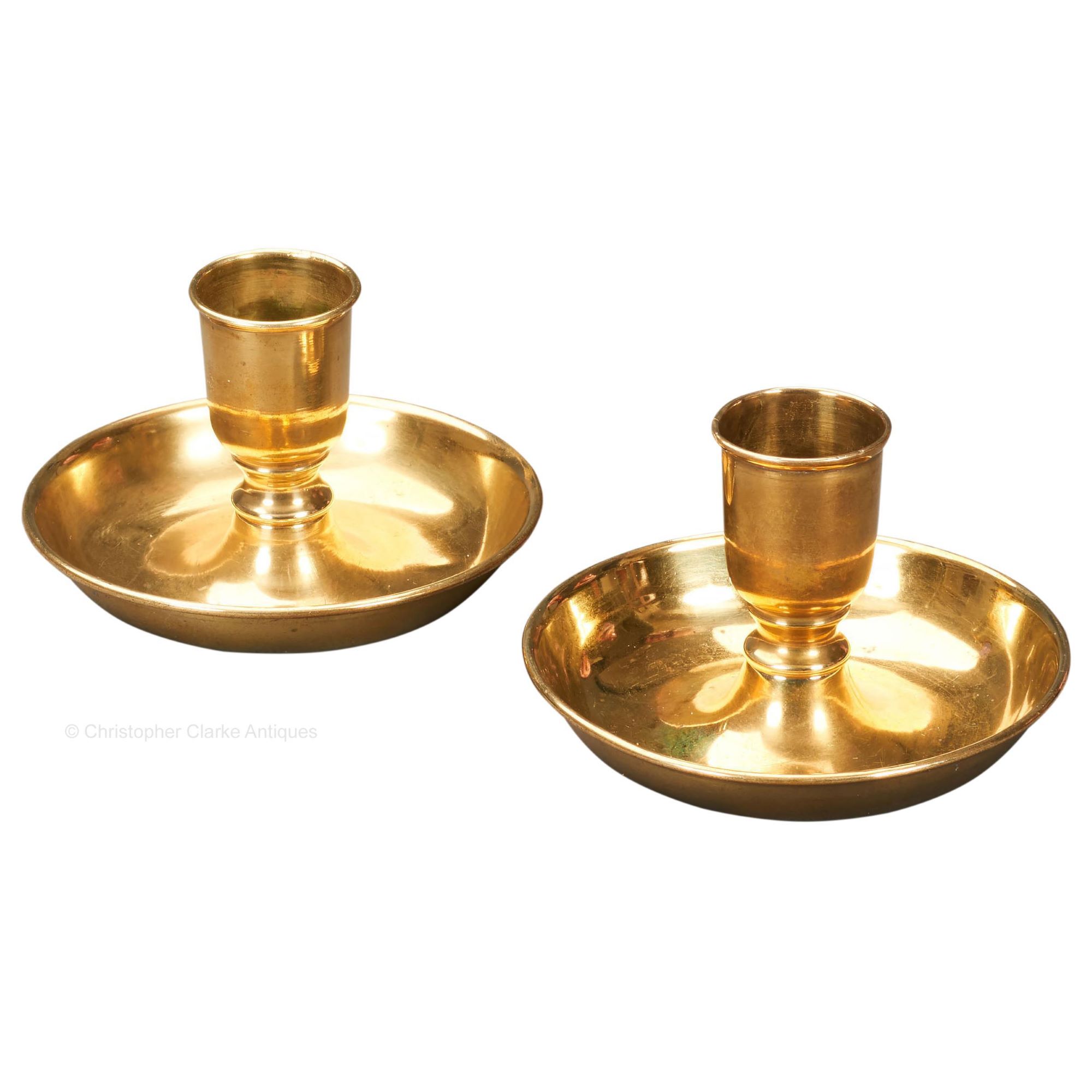 A pair of pressed brass Brighton Buns Candlesticks made to dismantle for travel.