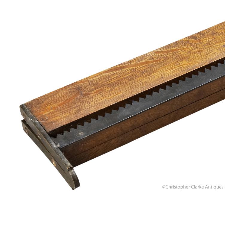 A Platt's oak Hanging Boot and Shoe Rack made of oak with a brass serrated strip.