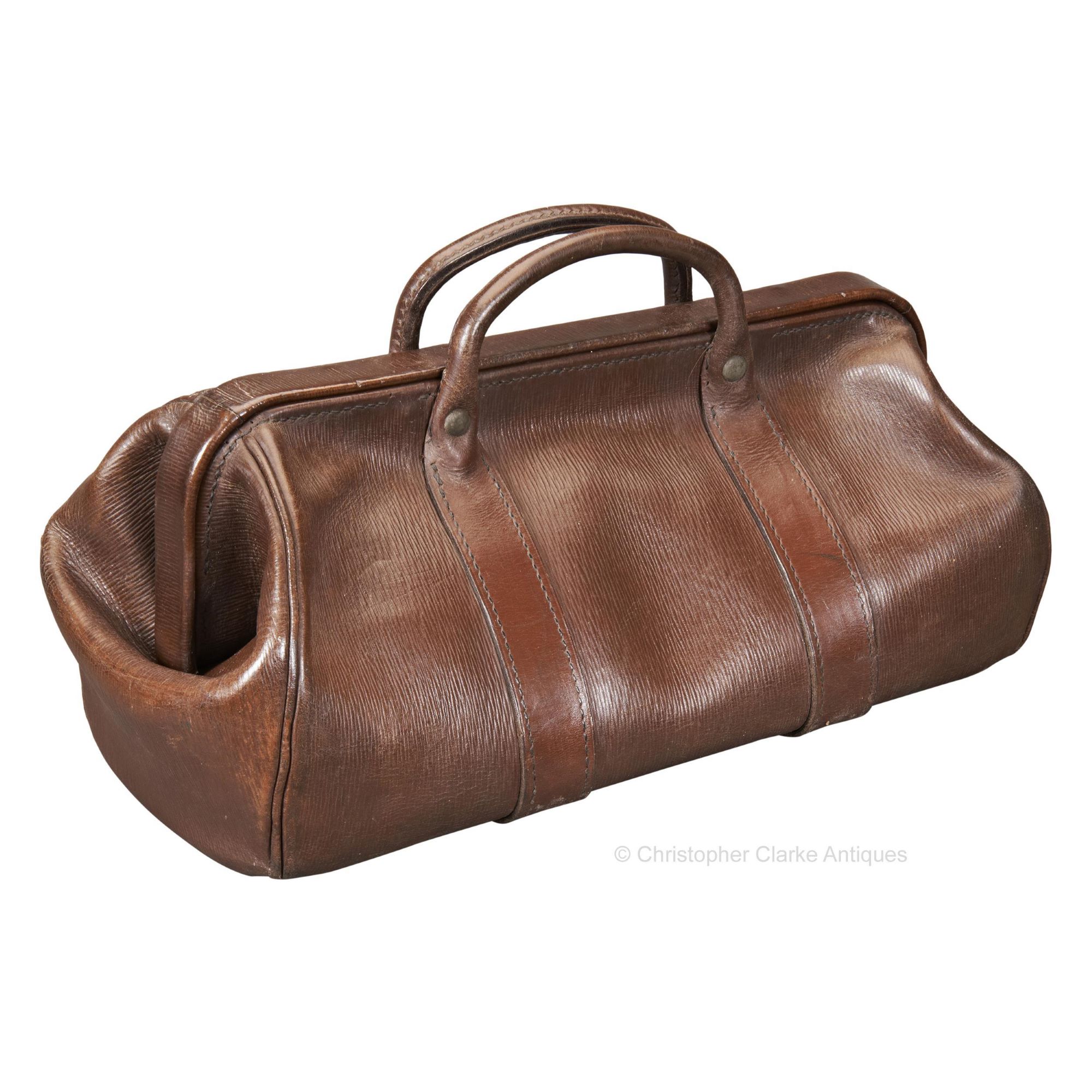 As with the majority of these bags, the key to the lock is missing. The brass lock still operates with a slide mechanism. A well made bag that can still be used. Circa 1900.