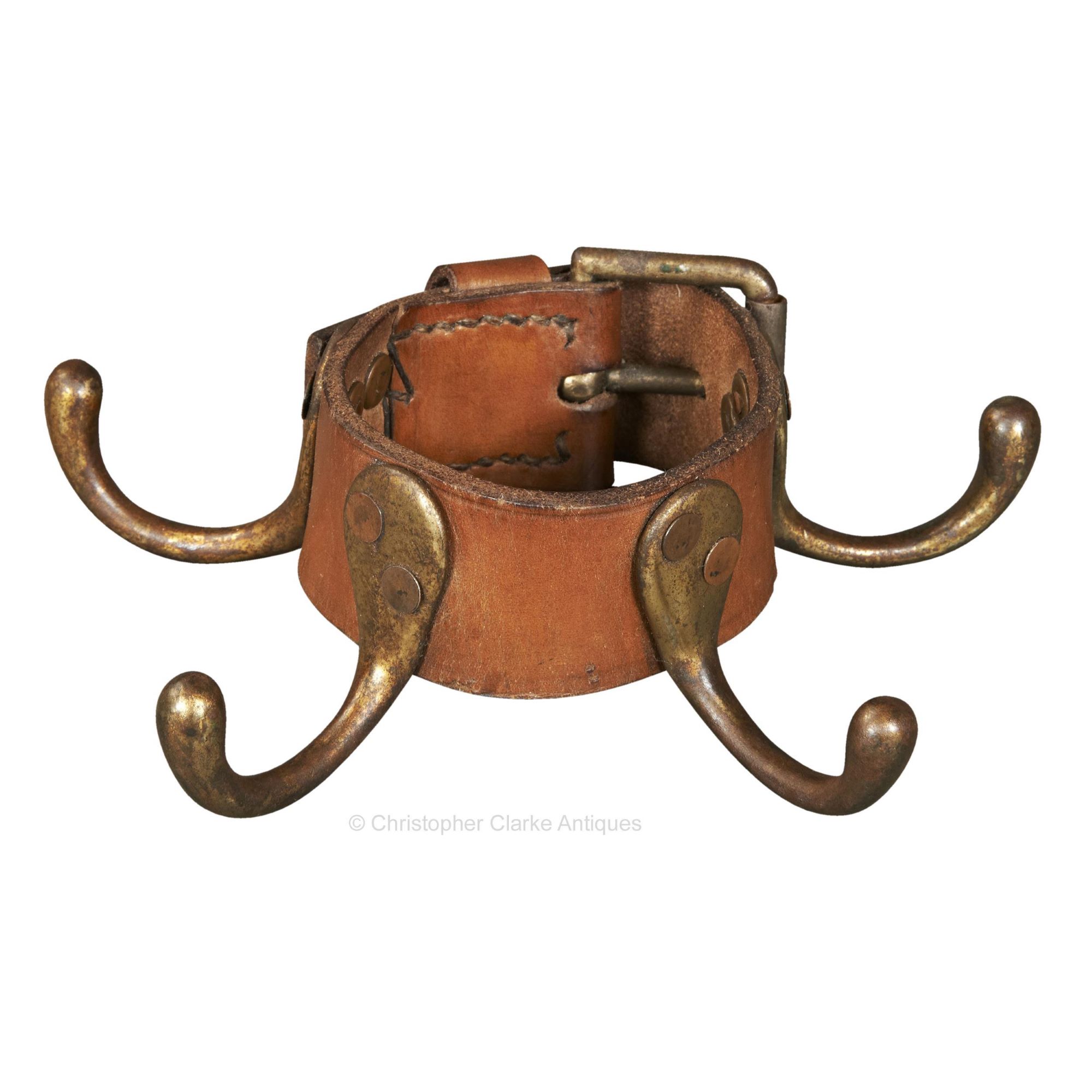 The strap is well made with a good steel buckle, loop for the belt and tooled tramlines to the belt's edges. The four gilt brass hooks are each fixed to the leather belt by two copper rivets. A very useful item for an army officer at the turn of 1900.